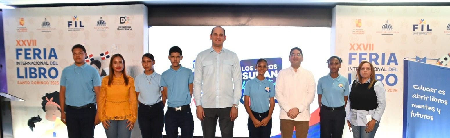 El servidor público aprovechó la ocasión para felicitar al ministro de Cultura, Roberto Salcedo, por la buena organización de la Feria del Libro 2025, luego de visitar el stand del INABIE.